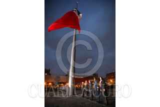 MEXICO D.F. 19SEPTIEMBRE2007.- El presidente de los Estados Unidos Mexicanos, Felipe Calderon Hinojosa, durante el izamiento de la bandera monumental con motivo de los sismos de 1985, que tuvo lugar en la plaza de la constitución. FOTO: ALFREDO GUERRERO/CUARTOSCURO.COM