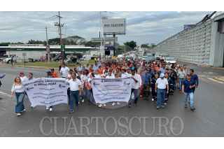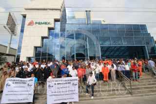 VILLAHERMOSA, TABASCO, 02DICIEMBRE2024.- Empresarios del Frente Amplio de Subcontratistas al Servicio de Pemex (FASP) realizaron protestas y una marcha para exigir a Pemex el pago de adeudos millonarios pendientes desde hace un año. Las movilizaciones fueron en la oficina corporativa de la paraestatal y el Centro Técnico Administrativo Región Sur, en Tabasco 2000. FOTO: LUIS LÓPEZ/CUARTOSCURO.COM
