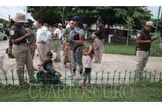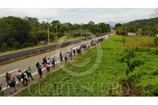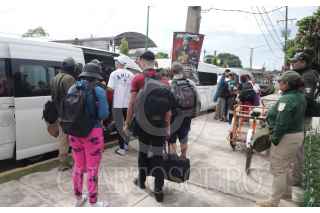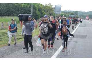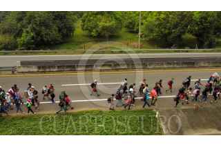 TAPACHULA, CHIAPAS, 02DICIEMBRE2024.- Integrantes del Instituto Nacional de Migración (INM) intentó detener una caravana de migrantes que partió en las primeras horas del día, no lograron su objetivo. Ya que muchas de las personas que buscan llegar a la frontera norte del país para de ahí internarse hacia Estados Unidos decidieron salir huyendo del Parque Bicentenario donde estaban concentrados. Algunos si tomaron la opción que les ofrecieron las autoridades migratorias y subieron a las camionetas para ser traslados a algún albergue. Muchos de los migrantes señalan que apresuran el paso para poder pedir asilo en Estados Unidos antes de la toma de protesta de Donald Trump, quien a sentenciado que su gobierno realizará deportaciones masivas. FOTO: DAMIÁN SÁNCHEZ/CUARTOSCURO.COM