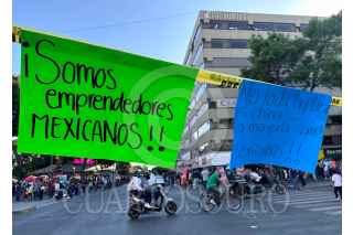 CIUDAD DE MÉXICO, 02DICIEMBRE2024.- Comerciantes supuestamente de la Plaza Izazaga 89 protestan de manera pacífica, deteniendo la vialidad de Pino Suárez y Avenida 20 de Noviembre, para exigir que se detenga la extinción del inmueble como plaza comercial. Esto ocurre luego de que Marcelo Ebrard Casaubón, secretario de Economía, anunciara que se suspendería el uso comercial de la plaza por piratería y falta de pago de impuestos. FOTO: ANDREA MURCIA /CUARTOSCURO.COM