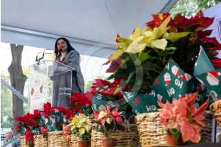 CIUDAD DE MÉXICO, 02DICIEMBRE2024.- La secretaria de Turismo de la Ciudad de México, Alejandra Frausto Guerrero, inauguró hoy el Festival Flores de Nochebuena, sobre la avenida Paseo de la Reforma, en el tramo que va de la Estela de Luz a la Glorieta de la Diana Cazadora, en donde 140 expositores de cuatro alcaldías ofrecerán las tradicionales flores de Navidad y otros productos tradicionales propios de la temporada decembrina. En ambas aceras de la emblemática vialidad capitalina se colocaron floricultores de las mencionadas demarcaciones. Aunado a ello, los productores de la Magdalena Contreras presentarán flores de grandes pétalos intensamente rojos, que son las tradicionales y más conocidas. De la planta navideña se conocen actualmente más de 100 variedades. FOTO: SECRETARÍA DE TURISMO CDMX/CUARTOSCURO.COM