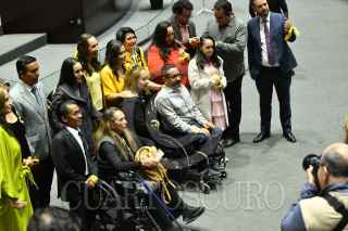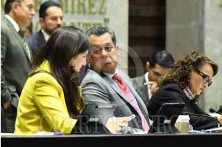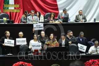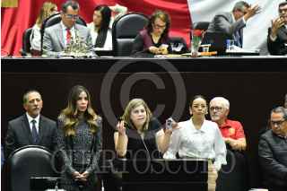 CIUDAD DE MÉXICO, 03DICIEMBRE2024.- Sergio Gutiérrez, presidente de la mesa directiva, junto a las vicepresidentas: Kenia López Rabadán, y Dolores Padierna, durante la sesión ordinaria de la Cámara de Diputados, en la que se discute el dictamen en materia de protección a la salud, la cual prohíbe el uso de vapeadores y el uso ilícito de fentanilo. FOTO: MARIO JASSO/CUARTOSCURO.COM