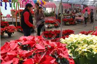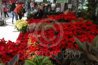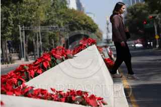 CIUDAD DE MÉXICO, 03DICIEMBRE2024.- Una persona camina sobre el camellón de Paseo de la Reforma donde fueron colocadas flores de Nochebuena. FOTO: DANIEL AUGUSTO/ CUARTOSCURO.COM