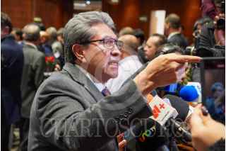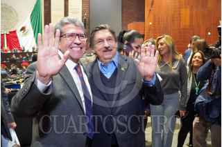 CHILPANCINGO, GUERRERO, 03DICIEMBRE2024.- Ricardo Monreal, coordinador de los Senadores de Morena, y Napoleón Gómez Urrutia, diputado de Morena y líder minero, durante la sesión en la Cámara de Diputados. FOTO: ELIZABETH RUIZ/CUARTOSCURO.COM