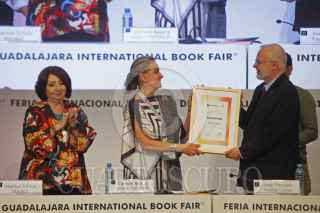 GUADALAJARA, JALISCO. 03DICIEMBRE2024.- Carmen López-Portillo recibió el Homenaje al Bibliófilo José Luis Martínez, esto en el marco de la edición 38 de la Feria Internacional del Libro De Guadalajara (FIL), que se lleva a cabo en las instalaciones de la Expo Guadalajara y en donde el País Invitado de Honor es España. FOTO: FERNANDO CARRANZA GARCIA / CUARTOSCURO.COM