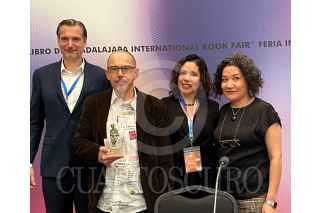 GUADALAJARA, JALISCO, 03DICIEMBRE2024.- Entrega de los premios Barco de Vapor y Gran Angular de la Fundación SM durante la Feria Internacional del Libro. El ganador de Barco de Vapor fue Juan Carlos Quezadas por “Lo que comen los diablitos” y el Gran Angular fue para Karime Cardona Cury por “Mirai y las princesas zorro”. Entregaron los premios Fernando Revilla, presidente de SM España y Cecilia Espinosa, directora de SM México. FOTO: ANA LUISA ANZA/CUARTOSCURO.COM