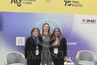 GUADALAJARA, JALISCO, 03DICIEMBRE2024.- Carla Humphrey Jordan, Consejera Electoral del INE; Ariana Estrada Villanueva, Coordinadora, y Flor Dessire León Hernández, Directora de la Unidad Técnica de Igualdad de Género y no Discriminación del INE, durante la presentación del libro “Violencia Política contra las Mujeres en Razón de Género en México: Proceso Electoral Federal 2020-2021”, en la FIL de Guadalajara. FOTO: INE/CUARTOSCURO.COM