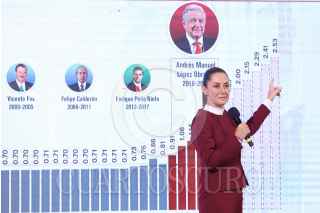 CIUDAD DE MÉXICO, 04DICIEMBRE2024.- Claudia Sheinbaum, presidenta de México, mostró el aumento al salario mínimo desde el sexenio del ex presidente Carlos Salinas de Gortari hasta del ex mandatario, Andrés Manuel López Obrador. FOTO: DANIEL AUGUSTO/ CUARTOSCURO.COM