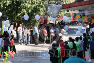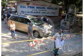 YAUTEPEC, MORELOS, 04DICIEMBRE2024.- Cortejo fúnebre del niño Diego de once años, alumno de sexto año de la escuela Miguel Hidalgo de este municipio. El niño murió luego de que fue herido por una bala pérdida, cuando acudió a comprar tortillas y quedó envuelto en una balacera donde un hombre de 36 años murió. Vecinos, familiares, compañeros de escuela acompañaron el cortejo que recorrió las calles del municipio, llegando al zócalo donde el padre del niño lanzo un fuerte mensaje a la sociedad y gobernantes. FOTO: MARGARITO PÉREZ RETANA/CUARTOSCURO.COM
