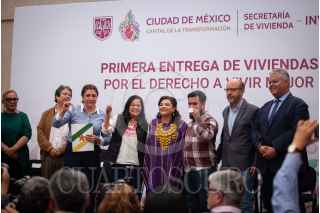 CIUDAD DE MÉXICO, 04DICIEMBRE2024.- Clara Brugada, Jefa de Gobierno, encabeza entrega de vivienda INVI con un total de 90 departamentos. La entrega de llevo a cabo en el emblemático inmueble de Manzanares 25, Centro Histórico. FOTO: ANDREA MURCIA /CUARTOSCURO.COM