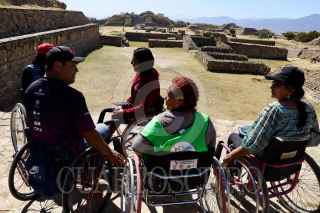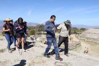 SAN PEDRO IXTLAHUACA, OAXACA, 04DICIEMBRE2024.- Permitir que personas con discapacidades accedan al legado histórico y cultural de Oaxaca, es el objetivo de hacer accesibles las zonas arqueológicas como Monte Albán. En torno al Día Internacional de las Personas con Discapacidad, que se conmemora el 3 de diciembre, este día el Instituto Nacional de Antropología e Historia (INAH) el Sistema para el Desarrollo Integral de la Familia (DIF) y la Universidad Autónoma Benito Juárez de Oaxaca a través de la Facultad de Arquitectura, dieron a conocer iniciativas para que personas con discapacidades de movilidad, auditiva y visual puedan conocer y recorrer la zona arqueológica de Monte Albán. Se han puesto a disposición recorridos guiados en lengua de señas mexicana y especiales para débiles visuales y ciegos que incluyen maquetas a escala de edificios que conforman el conjunto monumental. FOTO: CAROLINA JIMÉNEZ/CUARTOSCURO.COM
