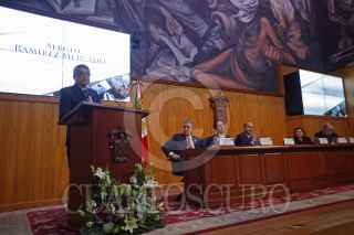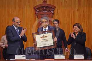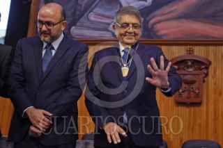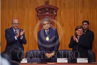 GUADALAJARA, JALISCO. 04DICIEMBRE2024.- El novelista, cuentista, ensayista, periodista y político nicaragüense Sergio Ramírez Mercado, recibió el Honoris Causa por la Universidad de Guadalajara, en evento que se llevo a cabo en el Paraninfo Enrique Díaz de León, esto en el marco de la edición 38 de la Feria Internacional del Libro De Guadalajara (FIL), en donde el País Invitado de Honor es España. FOTO: FERNANDO CARRANZA GARCIA / CUARTOSCURO.COM