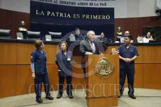 CIUDAD DE MÉXICO, 04DICIEMBRE2024.- Adán Augusto López, coordinador de los senadores de Morena, anuncio que partir del mes de enero de 2025 los trabajadores limpieza del Senado será contratados cómo trabajadores de base de la Cámara de Senadores, actualmente éstos trabajan en la modalidad de outsourcing. FOTO: CUARTOSCURO.COM
