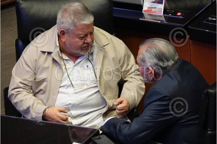CIUDAD DE MÉXICO, 05DICIEMBRE2024.- Los senadores Manuel Huerta Ladrón de Guevara y Adán Augusto conversaron durante la Sesión Ordinaria en materia de la Reforma al Poder Judicial. FOTO: GRACIELA LÓPEZ/CUARTOSCURO.COM