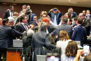 CIUDAD DE MÉXICO, 05DICIEMBRE2024.- Los senadores Mario Humberto Vázquez (PAN) se enfrentó verbalmente con Adán Augusto López (Coordinador de Morena), luego de que el primero lanzará fuertes críticas a Morena por el caso de Migue Ángel Yunes, senador ex panista quién voto a favor de la Reforma Judicial, por lo que el tabasqueño pidió que se disculpara lo que llevo a qué varios senadores se sumarán a los descalificativos, esto durante la sesión en donde se discutieron las leyes secundarias de la Reforma Judicial. FOTO: CUARTOSCURO.COM