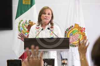 XALAPA, VERACRUZ, 06DICIEMBRE2024.- Rocío Nahle dio su primera conferencia ante medios de comunicación como gobernadora de Veracruz. FOTO: YERANIA ROLÓN/CUARTOSCURO.COM