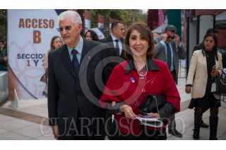 TLAXCALA, TLAXCALA, 06DICIEMBRE2024.- El ex gobernador de Tlaxcala (1999-2005) Alfonso Sánchez Anaya en compañía de su esposa María del Carmen Ramírez acudieron al tercer informe de la actual gobernadora Lorena Cuellar Cisneros, en el cual destacó la participación en eventos internacionales que han posicionado a Tlaxcala en el escenario global y la creación de espacios públicos de gran impacto social. FOTO: ALAIN HERNÁNDEZ/CUARTOSCURO.COM