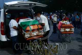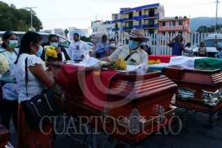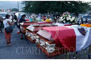 CHILPANCINGO, GUERRERO, 06DICIEMBRE2024.- Los restos de cinco víctimas de la guerra sucia de los años 70 fueron entregados a sus familiares tras medio siglo desaparecidos. Se trata de Pablo Rojas Terán de 14 años, Gervasio Bernardino Durán de 23 años, José Isabel Rojas Bernardino de 24 años, Apolonio Hernández Bernardino de 30 años y Bartolo Rojas Nazario de 22 años. Los restos fueron localizados por los mismos familiares en una fosa clandestina en la comunidad de Los Espadines y Las Desdichas, pertenecientes al municipio de Ajuchitlán del Progreso, en la Tierra Caliente de la entidad, entre el 4 y 7 de septiembre de 2023. Las familias de las víctimas forman parte del colectivo de Esposas e Hijos de los Desaparecidos de la Guerra Sucia en Atoyac de Álvarez, quienes dieron a conocer que durante la exhumación fueron localizados restos de siete personas que fueron desaparecidas en la Guerra Sucia. También explicaron que hubo al menos 600 desaparecidos por el Ejército Mexicano hace 50 años, sin que hasta la fecha respondan por su responsabilidad por las masacres y desapariciones que cometieron. FOTO: DASSAEV TÉLLEZ ADAME/CUARTOSCURO.COM