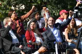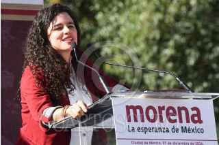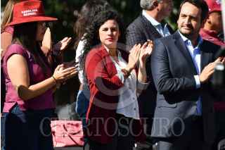 CIUDAD DE MÉXICO, 07DICIEMBRE2024.- Carolina Rangel, secretaria general de Morena, y Luisa María Alcalde, dirigente nacional de Morena, durante el cierre de la gira nacional de asambleas informativas y de afiliación por parte del Comite Nacional de Morena, evento realizado en la Plaza de las Tres Culturas en Tlatelolco. FOTO: MARIO JASSO/CUARTOSCURO.COM
