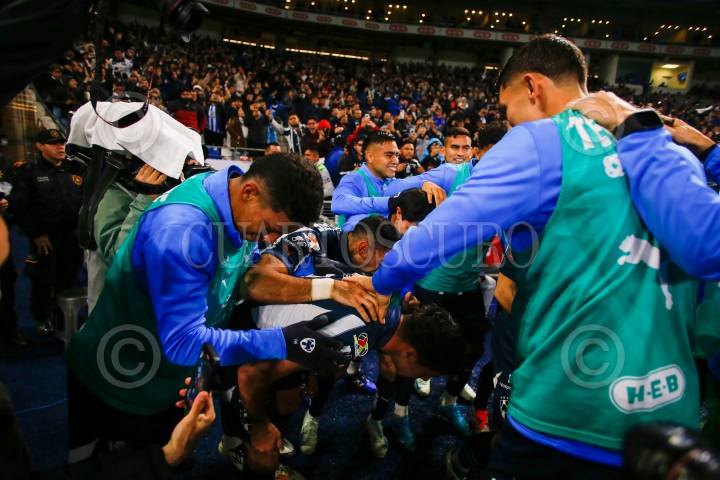 GUADALUPE, NUEVO LEÓN, 07DICIEMBRE024.- Jugadores de los Rayados del Monterrey, festejan el gol ante el Atlético San Luis, en el estadio BBVA, partido de vuelta de Semifinales de la Apertura 2024. Marcador Global: Monterrey: 6 - Atlético San Luis: 2. FOTO: GABRIELA PÉREZ MONTIEL / CUARTOSCURO.COM
