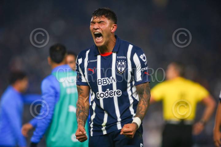 GUADALUPE, NUEVO LEÓN, 07DICIEMBRE024.- Brandon Vázquez de los Rayados del Monterrey, festeja el gol ante el Atlético San Luis, en el estadio BBVA, partido de vuelta de Semifinales de la Apertura 2024. Marcador Global: Monterrey: 6 - Atlético San Luis: 2. FOTO: GABRIELA PÉREZ MONTIEL / CUARTOSCURO.COM