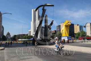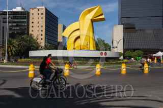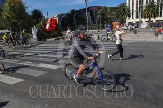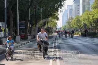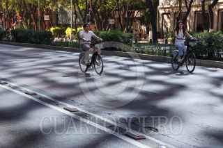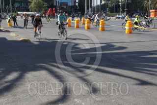 CIUDAD DE MÉXICO, 08DICIEMBRE2024.- Policía de tránsito supervisa los cortes viales en avenida Reforma y Juárez por el Paseo Ciclista Dominical. FOTO: MOISÉS PABLO/CUARTOSCURO.COM