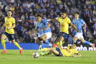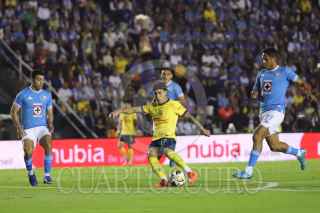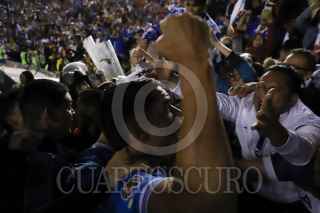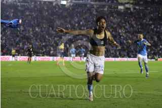 CIUDAD DE MÉXICO, 08DICIEMBRE2024.- Amaury Montaño, jugador de Cruz Azul, celebra el gol con el que puso el empate a tres de manera momentánea. FOTO: DANIEL AUGUSTO/ CUARTOSCURO.COM