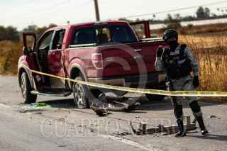 LUIS MOYA, ZACATECAS, 09DICIEMBRE2024.- Seis personas sin vida, oficialmente, fue el resultado de un enfrentamiento entre grupos antagónicos del crimen organizado, la madrugada de este día, en los límites de los municipios de Luis Moya y Ojocaliente. La Vocería de la Mesa Para la Construcción de la Paz informó de seis personas, sin embargo, en el lugar varios testigos observaron por lo menos una centena de cuerpos sin vida distribuidos en diferentes puntos. Fue alrededor de las 3 de la madrugada cuando vecinos comenzaron a escuchar la refriega sobre la carretera Panamericana que cruza por el centro de las dos poblaciones. Mas tarde, automovilistas que iniciaban su jornada, fueron observando cuerpos sin vida en diferentes puntos, además de camionetas baleadas y chocadas. Justo antes de salir del municipio de Luis Moya fue localizado el cuerpo de un joven sin vida, esposado y con impactos de arma de fuego; a unos 300 metros se encontraba un cuerpo más, según vecinos; también junto a una camioneta Toyota Tacoma café que habría quedado a la orilla de la carretera, habría perdido la vida otro hombre más; a la altura de la comunidad de La Concepción, pudieron observarse cinco cuerpos sin vida sobre el asfalto, que parecería que habrían sido violentados y asesinados previamente. La zona, límete entre las entidades de Aguascalientes y Zacatecas, ha sido durante las últimas semanas lugar de enfrentamientos, asesinatos y desapariciones. Diferentes mujeres, adultos mayores y niños del lugar se acercaban a las zonas de acordonamiento para preguntar o intentar observar si una de las víctimas sería su familiar desaparecido. FOTO: GENARO NATERA /CUARTOSCURO.CON