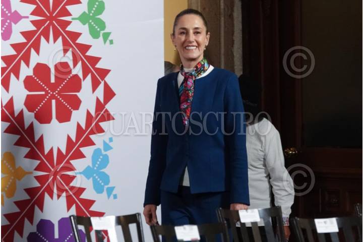 CIUDAD DE MÉXICO, 10DICIEMBRE2024.- Claudia Sheinbaum, presidenta constitucional de los Estados Unidos Mexicanos, durante su llegada a conferencia del Pueblo realizada en Palacio Nacional. FOTO: GRACIELA LÓPEZ/CUARTOSCURO.COM