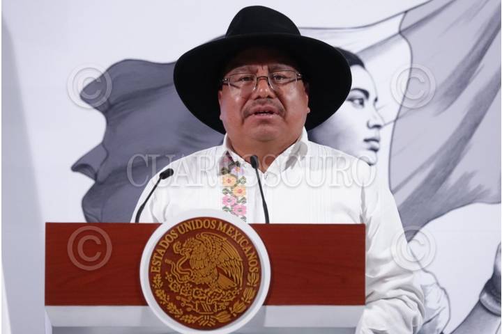 CIUDAD DE MÉXICO, 10DICIEMBRE2024.- Juan Carlos Reyes Gómez, rector de la Universidad de las Lenguas Indígenas, durante su participación en la Conferencia del Pueblo realizada en Palacio Nacional. FOTO: GRACIELA LÓPEZ/CUARTOSCURO.COM