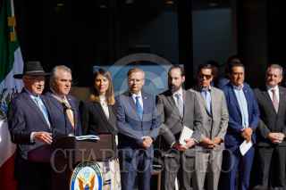 CIUDAD DE MÉXICO, 10DICIEMBRE2024.- Ken Salazar, embajador de Estados Unidos en México, encabezó la conferencia de prensa para hablar sobre la próxima relación de México-Estados Unidos una vez que el presidente Donald Trump tome protesta. El embajador estuvo acompañado por Mónica Aspe, CEO de AT&T México, y Francisco Cervantes, presidente del Consejo Coordinador Empresarial. FOTO: GALO CAÑAS/CUARTOSCURO.COM