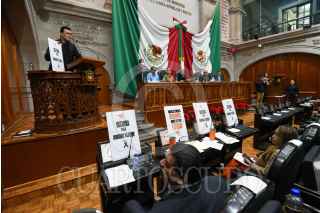 TOLUCA, ESTADO DE MÉXICO, 10DICIEMBRE2024.- El diputado local Juan Zepeda y coordinador parlamentario de Movimiento Ciudadano durante la sesión de la LXII Legislatura local pidió justicia y un minuto de silencio por la muerte de Rodrigo Vázquez, coordinador de MC en el sur de la entidad, Benito Aguas, diputado federal del PVEM y por la muerte de 17 menores por un brote de Klebsiella Oxytoca. FOTO: CRISANTA ESPINOSA AGUILAR /CUARTOSCURO.COM