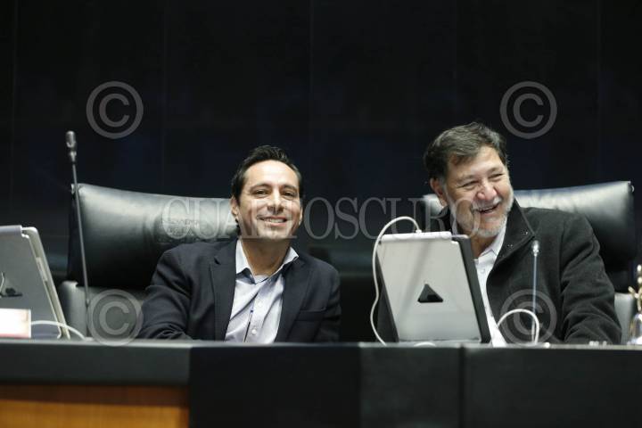 CIUDAD DE MÉXICO, 10DICIEMBRE2024.- Los senadores Mauricio Vila Dosal y Gerardo Fernández Noroña durante la sesión en el Senado de la República. FOTO: CUARTOSCURO.COM