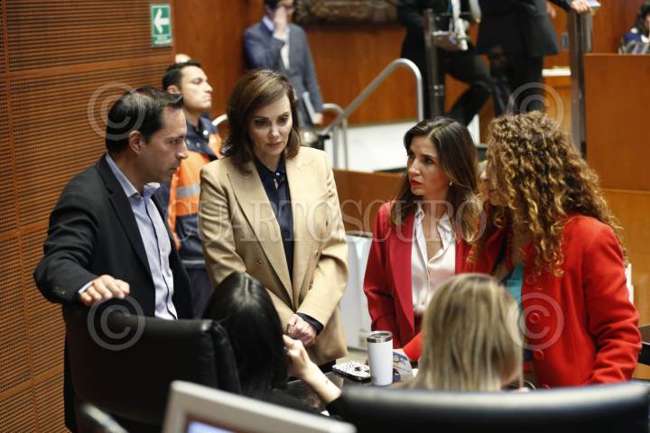 CIUDAD DE MÉXICO, 10DICIEMBRE2024.- El senador Mauricio Vila Dosal conversa con las senadoras Lilly Téllez y Susana Zatarain García durante la sesión en el Senado de la República. FOTO: CUARTOSCURO.COM