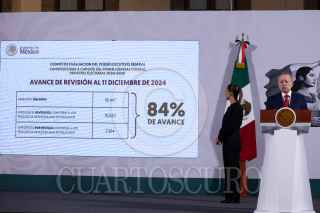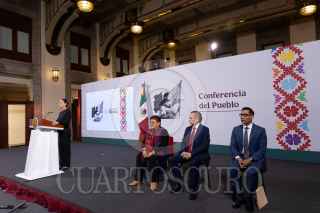 CIUDAD DE MÉXICO, 11DICIEMBRE2024.- Claudia Sheinbaum Pardo, presidenta de México, encabezó *La mañanera del pueblo*, acompañada por Ernestina Godoy Ramos, consejera jurídica del Ejecutivo Federal; Arturo Zaldívar Lelo de Larrea, coordinador general de Política y Gobierno; y Miguel Elorza Vázquez, coordinador de Infodemia. FOTO: PRESIDENCIA