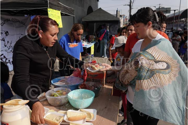 CIUDAD DE MÉXICO, 11DICIEMBRE2024.- En el marco de la celebración de la aparición de la Virgen de Guadalupe al indio San Diego, miles de peregrinos reciben comida en Avenida Zaragoza, alcaldía Iztapalapa. FOTO: GRACIELA LÓPEZ/CUARTOSCURO.COM