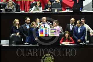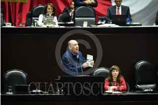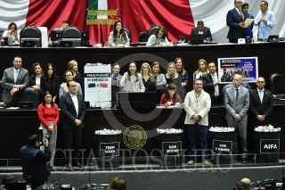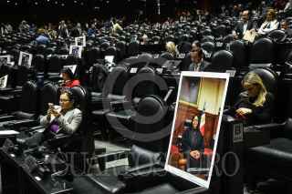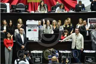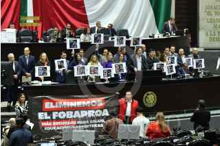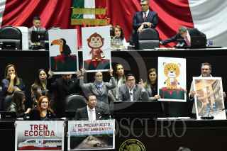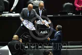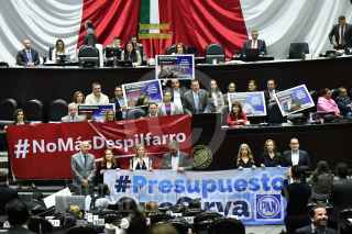 CIUDAD DE MÉXICO, 11DICIEMBRE2024.- Paulo Gonzalo Martínez López, diputado del PAN, junto a sus compañeros de bancada, protestan durante la sesión ordinaria de la Cámara de Diputados en la que se discute el presupuesto de egresos para el ejercicio fiscal 2025. FOTO: MARIO JASSO/CUARTOSCURO.COM