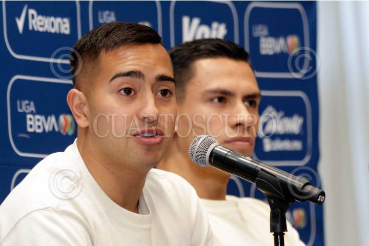 PUEBLA, PUEBLA, 11DICIEMBRE 2024.- Los jugadores del América, Erick Sánchez y Ángel Malagón, ofrecieron una rueda de prensa previo al partido de la final de ida del torneo Apertura 2024 de la Liga BBVA MX, entre los Rayados del Monterrey y las Águilas del América, celebrada en el Hotel Intercontinental Puebla. MIREYA NOVO/ CUARTOSCURO.COM