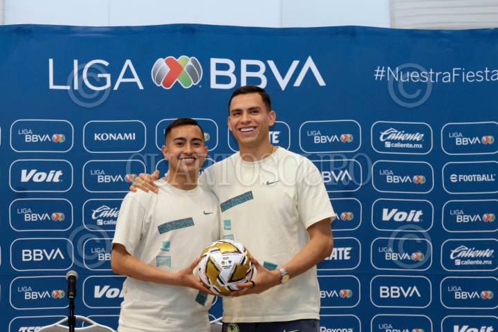 PUEBLA, PUEBLA, 11DICIEMBRE 2024.- Los jugadores del América, Erick Sánchez y Ángel Malagón, ofrecieron una rueda de prensa previo al partido de la final de ida del torneo Apertura 2024 de la Liga BBVA MX, entre los Rayados del Monterrey y las Águilas del América, celebrada en el Hotel Intercontinental Puebla. MIREYA NOVO/ CUARTOSCURO.COM