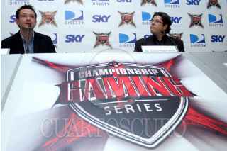 MÉXICO, D.F., 20SEPTIEMBRE2007.- Javier Anaya, director de programación de SKY, y Jose "Platao" Rocha, vicepresidente de Operaciones y Porducción de DirecTV, presentaron la "Championship Gaming Series, primer torneo de jugadores de videojuegos a nivel mundial, el cual se realizará por primera vez en la ciudad de México. FOTO: ISAAC ESQUIVEL/CUARTOSCURO.COM