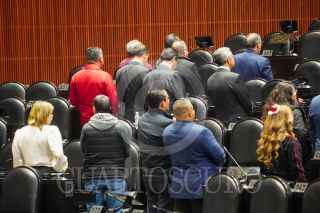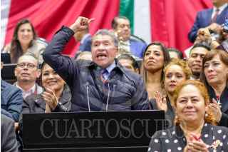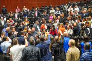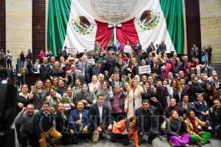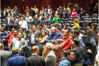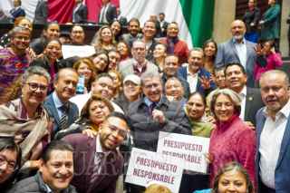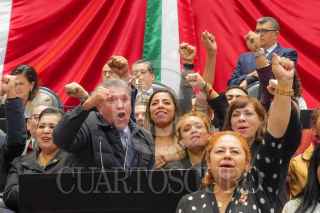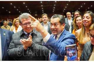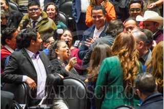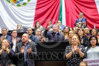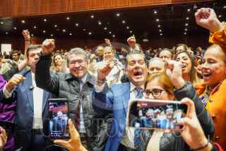 CIUDAD DE MÉXICO, 12DICIEMBRE2024.- Pedro Haces, Ricardo Monreal y Sergio Gutiérrez Luna celebran con sus compañeros de Morena la aprobación de la Ley de Egresos 2025, la cual calificaron de histórica, tras asegurar que continúan con la premisa de "primero los pobres", mientras que la oposición la calificaron de negativa tras criticar los recortes en salud y educación. FOTO: ELIZABETH RUIZ/CUARTOSCURO.COM