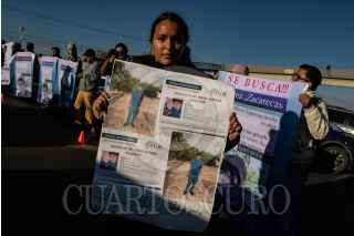 ZACATECAS, ZACATECAS, 12DICIEMBRE2024.- Dulce Jacobo, hermana de Maurilio de Jesús Jacobo Saldivar, de 16 años, desaparecido desde el pasado 27 de octubre en Jerez; se sumó al bloqueo por los desaparecidos en dónde familiares y amigos de Luis Alberto Espinoza Acuña, joven desaparecido el pasado sábado 07 de diciembre en el municipio de Jerez, bloquearon la carretera federal no. 45, para demandar acciones de búsqueda más efectivas para su localización. A la manifestación, realizada a la salida a los municipios de Jerez y Fresnillo, se integraron familiares de otros jóvenes desaparecidos en el pueblo mágico. Más tarde, la Fiscalía del Estado informó en redes sociales que fue localizado el cuerpo de un hombre sin vida en la comunidad de El Vergel, municipio de Villanueva, quien al parecer concuerda con las características de Luis Alberto, esperando la confirmación con la familia. A días de terminar 2024, el Registro Nacional de Personas Desaparecidas y No Localizadas (Rnpdno) reportó 231 víctimas que faltan por encontrar en Jerez de García Salinas. Este año suman 48, el mayor en la historia. De esta manera, la cantidad de personas desaparecidas y no localizadas en Jerez superó a las 46 registradas en 2023, las 17 de 2022 y las 36 de 2021, cuando los desplazamientos forzados detonaron alertas sobre la situación en el municipio. FOTO: ADOLFO VLADIMIR /CUARTOSCURO.COM
