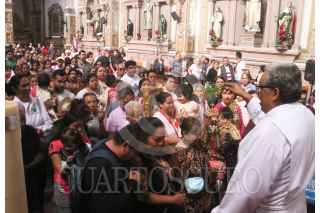 CUERNAVACA, MORELOS, 12DICIEMBRE2024.- Cientos de católicos acuden al chapitel del Calvario a celebrar el 493 aniversario de la aparición de la Virgen de Guadalupe al indio Juan Diego en el cerro del Tepeyac. Padres y madres de familia llevaron a sus hijos pequeños vestidos con atuendo de indígena, emulando al "visionario mariano". FOTO: MARGARITO PÉREZ RETANA/CUARTOSCURO.COM