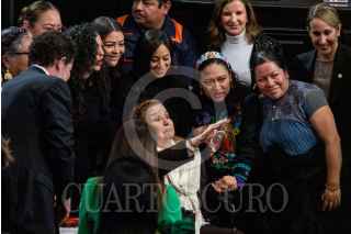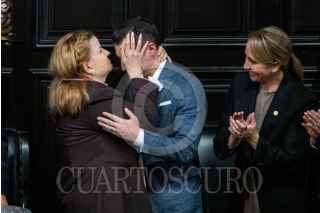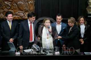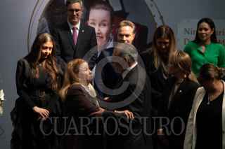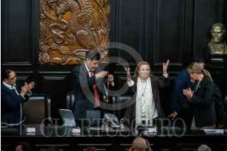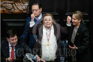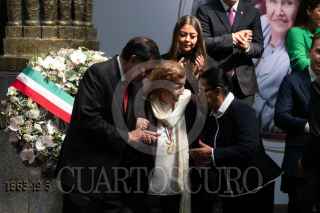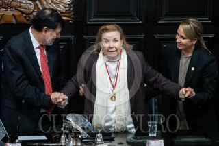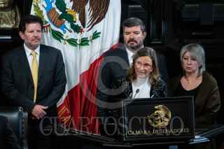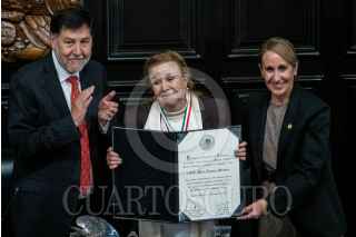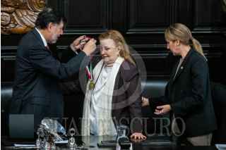CIUDAD DE MÉXICO, 12DICIEMBRE2024.- La periodista y activista Ninfa María Deándar Martínez fue galardonada con la medalla Belisario Domínguez ante el pleno del Senado de la República. La medalla fue entregada de manos del presidente del pleno Gerardo Fernández Noroña y por la senadora Virginia Marie Magaña Fonseca. FOTO: GALO CAÑAS/CUARTOSCURO.COM