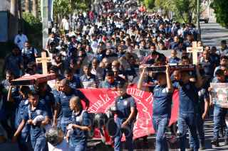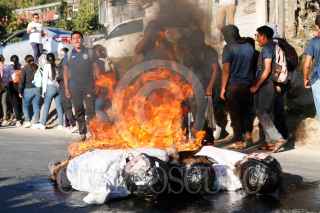CHILPANCINGO, GUERRERO, 12DICIEMBRE2024.- Estudiantes de la Escuela Normal Rural ‘Raúl Isidro Burgos’ de Ayotzinapa y normalistas que integran la Federacion de Estudiantes Campesinos Socialistas de México (FECSM), marcharon por calles y avenidas de Chilpancingo en exigencia de justicia por el homicidio de sus compañeros Jorge Alexis Herrera Pino y Gabriel Echeverría de Jesús, cuyo asesinato se registró hace ya 13 años. Con una marcha, misa y quema de monigotes, culminó la jornada de movilizaciones para exigir justicia por el asesinato de los estudiantes de Ayotzinapa, los manifestantes arribaron a la capital del estado de Guerrero desde el mediodía de este jueves, a bordo de 16 autobuses, se reunieron en el monumento a Nicolás Bravo, cerca del mercado Baltazar R. Leyva Mancilla y de ahí partieron en marcha, recorriendo las principales avenidas y calles de la ciudad. Los estudiantes arribaron al punto conocido como Parador del Marqués, ubicado sobre la Autopista del Sol alrededor de las 2:30 de la tarde, donde atravesaron urbans en el sentido Sur-Norte para cerrar por completo la circulación vehicular de esa vía de cuota. FOTO: DASSAEV TÉLLEZ ADAME/CUARTOSCURO.COM