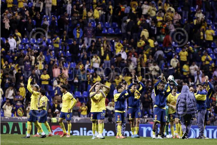 PUEBLA, PUEBLA, 12DICIEMBRE2024.- Jugadores en festejo durante el partido entre las Águilas del América y los Rayados del Monterrey, correspondiente a la final del ida del torneo Apertura 2024 de la Liga BBVA MX, celebrado en el Estadio Cuauhtémoc. FOTO: MIREYA NOVO/ CUARTOSCURO.COM