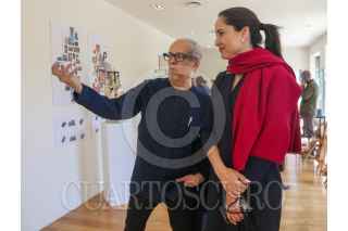 CIUDAD DE MÉXICO. 13DICIEMBRE2024.- Claudia Curiel y José Paredes en la inauguración de la exposición de Jóvenes Creadores 2023-2024, que se exhibe en la casa Miguel Alemán del Complejo Cultural Los Pinos, en la alcaldía Miguel Hidalgo. FOTO: VICTORIA VALTIERRA/CUARTOSCURO.COM