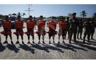 TAPACHULA, CHIAPAS, 13DICIEMBRE2023.- . La secretaria de la Marina de la vigésima segunda Zona Naval dió inicio a la denominada operación Salvavidas Inviernos 2024 con motivo de la implementación Plan Mariana. En total fueron desplegaron 37 elementos Navales, entre Oficiales, Clases, Marinera y dos embarcaciones menores para vigilancia marítima. FOTO: DAMIÁN SÁNCHEZ/CUARTOSCURO.COM