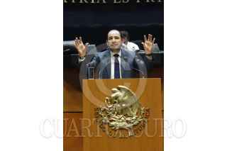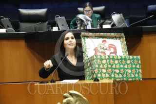 CIUDAD DE MÉXICO, 13DICIEMBRE2024.- Marko Cortés, coordinador de la bancada panista, durante su participación en el estrado de la sesión ordinaria de la Cámara Alta. FOTO: PRENSA PAN/CAURTOSCURO.COM