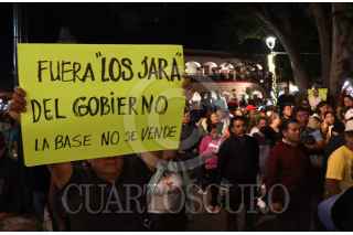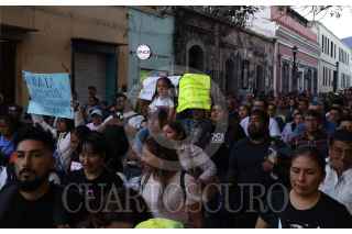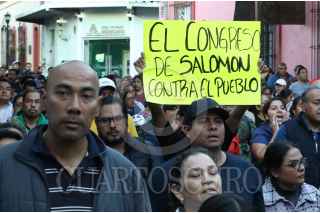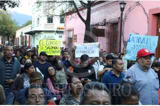 OAXACA DE JUÁREZ, OAXACA, 13DICIEMBRE2024.- Miles de agremiados al Sindicato de Trabajadores de los Poderes del Estado e Instituciones Descentralizadas de Carácter Estatal de Oaxaca (STPEIDCEO) marcharon hacia el Palacio de Gobierno en la capital del estado para exigir la derogación del decreto aprobado por el Congreso Local de la iniciativa enviada, por el gobierno del estado del morenista Salomón Jara Cruz, para la desaparición de mil 344 plazas. Los trabajadores denunciaron que la medida es arbitraria, ya que no están claros los criterios que se usaron para determinar dicha acción además de dejar en indefensión a personal que lleva hasta 30 años laborando. FOTO: CAROLINA JIMÉNEZ/CUARTOSCURO.COM